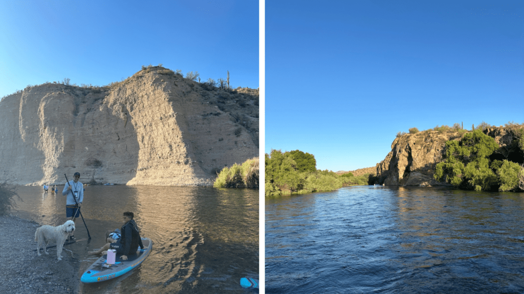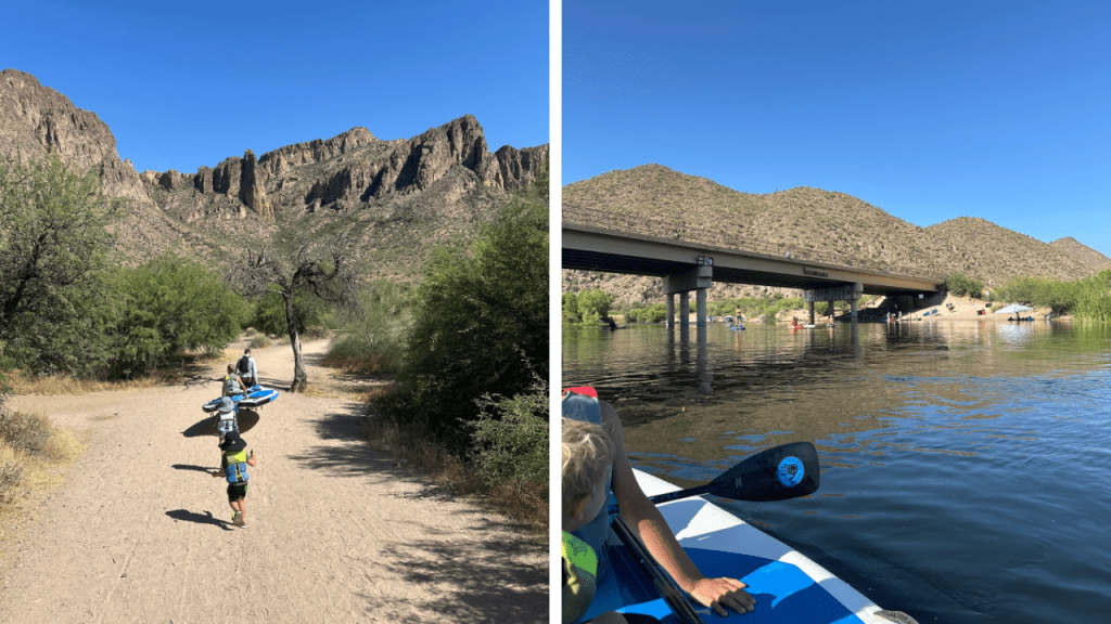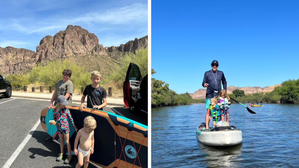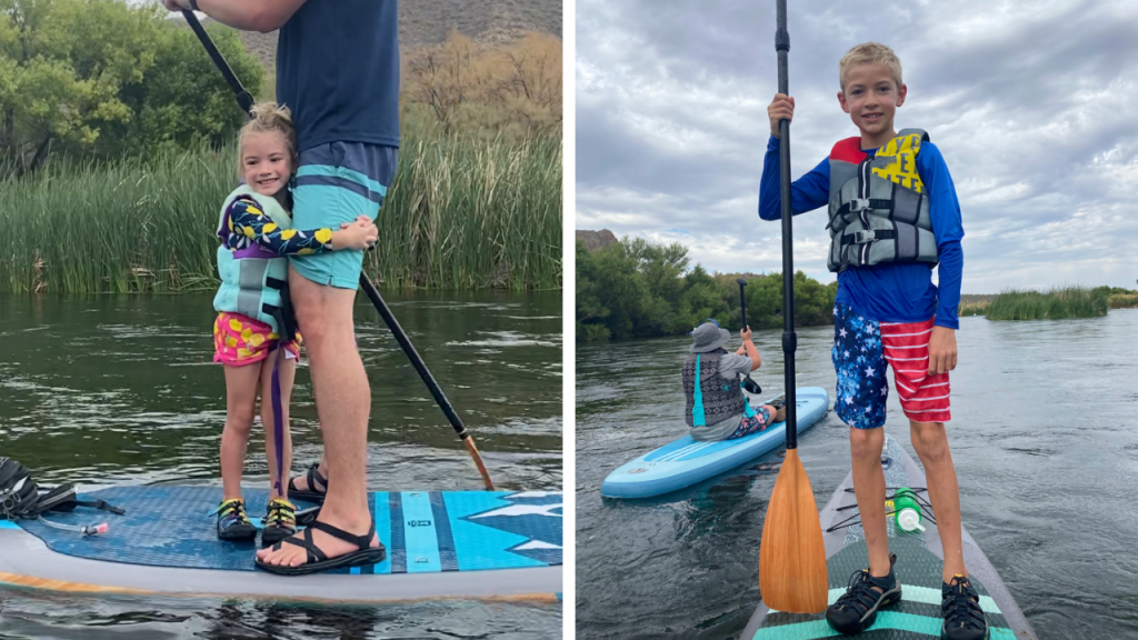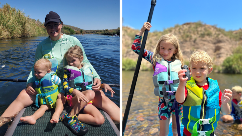 While you can definitely tube down the river, we prefer to use paddle boards. With a paddle board you have control over your speed and direction and kids have more space to move around. According to Arizona law, children 12 years and younger are required to wear a US Cost Guard approved life jacket. I also recently learned that even if you are over 12, you are required to have a life jacket on your paddleboard for each rider (even if you aren’t wearing it).